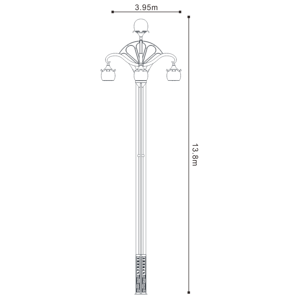 燈桿主體、桿體、底座材質(zhì)均為金屬鋼件,表面熱浸鋅后噴塑處理。