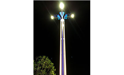 綻放”景觀燈的設(shè)計(jì)靈感來(lái)源于綻放的花朵,燈高12米,燈體裝飾節(jié)日氛圍燈帶,燈頭采用LED光源。整燈是現(xiàn)代制造工藝綻放的藝術(shù)之花,將功能與景觀照明完美結(jié)合。