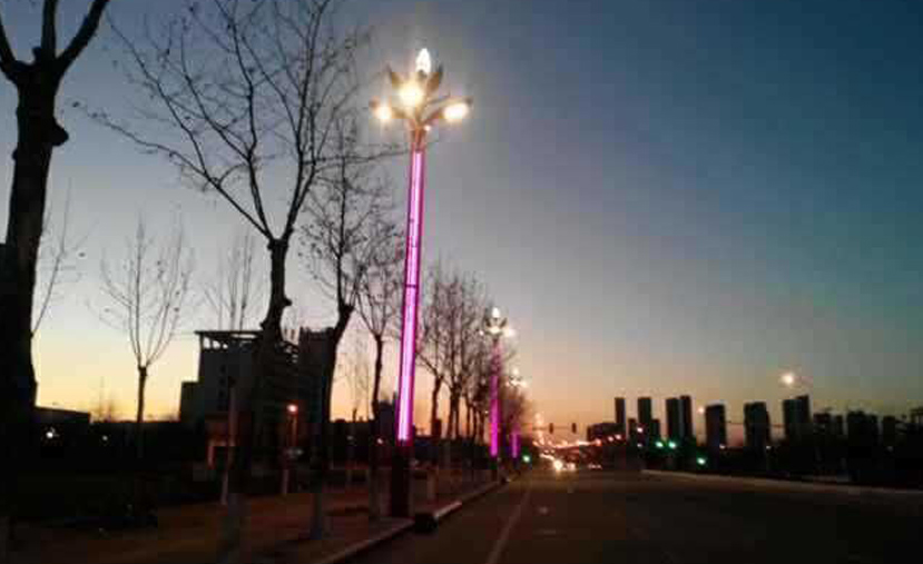 科技大道,位于煙臺高新區(qū),是煙臺“智慧城市”的試點區(qū)域。2015年底,春意盎然的到來為整個園區(qū)增添無限生機和活力。它寓意春季萬物復(fù)蘇,百花齊放,城市的經(jīng)濟蒸蒸日上。春意盎然高15米,主要是通過花卉造型進(jìn)行抽象設(shè)計而來。燈桿中部加裝LED氛圍光帶,使夜間照明更加絢麗;燈體內(nèi)部安裝智能控制系統(tǒng),使照明高效節(jié)能、綠色環(huán)保,另外燈桿上安裝攝像頭,為路燈裝上“眼睛”,實現(xiàn)了多平臺的交互運用