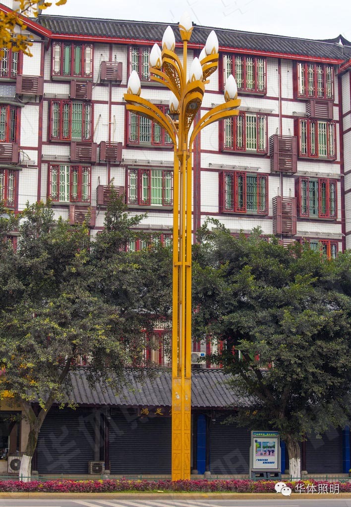 玉蘭燈,系華體照明精心打造的景觀照明路燈,兼顧景觀性與功能性,矩桿中間加載有可變色節(jié)日氛圍燈,營(yíng)造出熱鬧的節(jié)日氛圍,節(jié)日氛圍燈的下方,鏤空的靈猴嬉戲圖活潑生動(dòng)憨態(tài)可掬,在色彩變幻的LED貼片燈的照射下更加清晰靈動(dòng),帶給剛踏進(jìn)峨眉之地的游客驚喜。