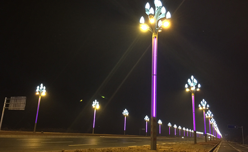 該款燈桿體內(nèi)加裝了節(jié)日氛圍燈,既保留玉蘭燈的美觀外形,又能在節(jié)日中增添祥和的歡樂氣氛。燈桿底座印有 “天府新區(qū),魅力仁壽” 鮮紅醒目字樣,成為新區(qū)道路的一道亮麗風景線。