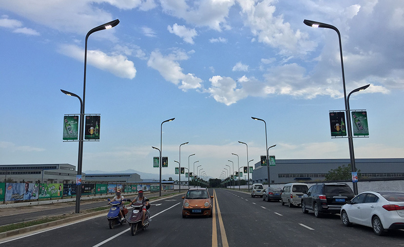 青啤大道兩旁安裝的雙葉燈,采用新葉植物造型元素并進(jìn)行流線型設(shè)計(jì),賦予現(xiàn)代簡(jiǎn)潔的線條,一次性成型制作。光源采用綠色節(jié)能的LED,安于高低臂燈頭上,桿體內(nèi)部安裝LED裝飾光源,中部則安裝了宣傳啤酒狂歡節(jié)的廣告牌,整燈透過光影層次,不僅讓道路更富有生命力,享有綠色環(huán)保的功能照明,而且烘托出第四屆青島啤酒節(jié)的節(jié)日氣氛。