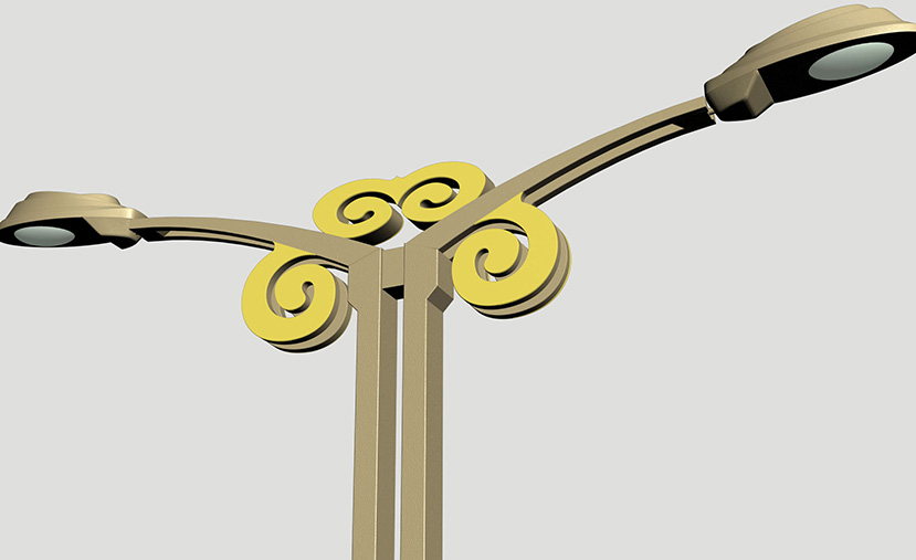 燈型采用漢代“云氣圖”元素,通過現(xiàn)代的造型結(jié)構(gòu)與中國漢代經(jīng)典的元素相結(jié)合,加入了“云氣圖”造型,內(nèi)部加裝LED裝飾光源,夜幕中通過內(nèi)透光的形式,勾勒出“云氣圖”造型的輪廓,使得“祥云之氣”簡單又具有典型的漢代文化氣息。